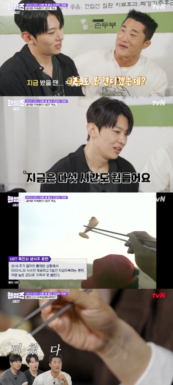 'µÎºÎÆÀ' ½Å½ÂÈ£, ¿À»ó¿í, Â÷ÅÂÇöÀº µÎºÎ»ï°ãµÎ·çÄ¡±â µî µÎºÎ·Î ¸¸µç °¢Á¾ ¿ä¸®¸¦ ¸Ô¾ú´Ù. À̸¦ º¸´ø µ¦½º´Â "UDT 'Áö¿ÁÁÖ' ÈÆ·ÃÀÌ »ý°¢³´Ù"¸ç ±¾ÁÖ¸° ¹è¸¦ ºÎ¿©Àâ¾Ò´Ù. 'Áö¿ÁÁÖ'´Â ÀǽÄÁÖ°¡ ÅëÁ¦µÈ »óȲ¿¡¼ ½Ä¼ö¸¸À¸·Î ÀÚÁ·ÇÏ´Â »ý½ÄÁÖ ÈÆ·ÃÀ» ÀǹÌÇÑ´Ù.