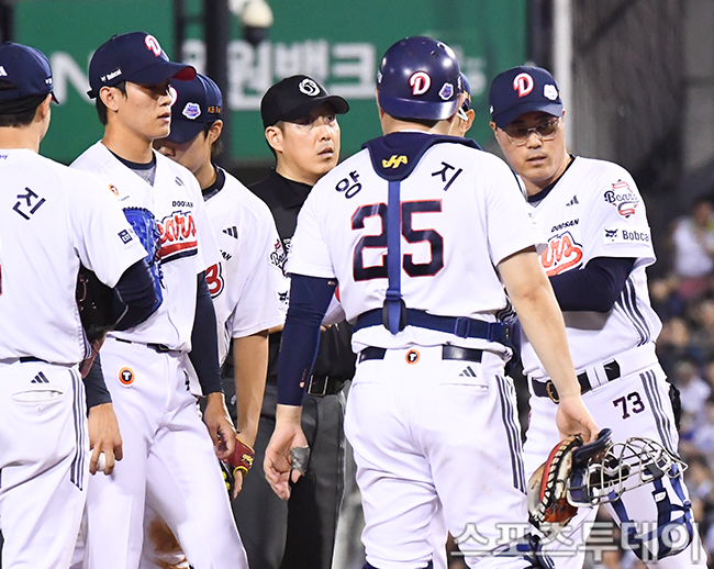 [½ºÆ÷Ã÷Åõµ¥ÀÌ ÆØÇöÁØ ±âÀÚ] 28ÀÏ ¼­¿ï Àá½Ç¾ß±¸Àå¿¡¼­ ¿­¸° 2025 KBO¸®±× »ï¼º ¶óÀÌ¿ÂÁî¿Í µÎ»ê º£¾î½ºÀÇ °æ±â, 5ȸ 2»ç 2·ç µÎ»ê Á¶¼ºÈ¯ °¨µ¶´ëÇàÀÌ ¸¶¿îµå¸¦ ¹æ¹®Çϰí ÀÖ´Ù. 2025.08.28.