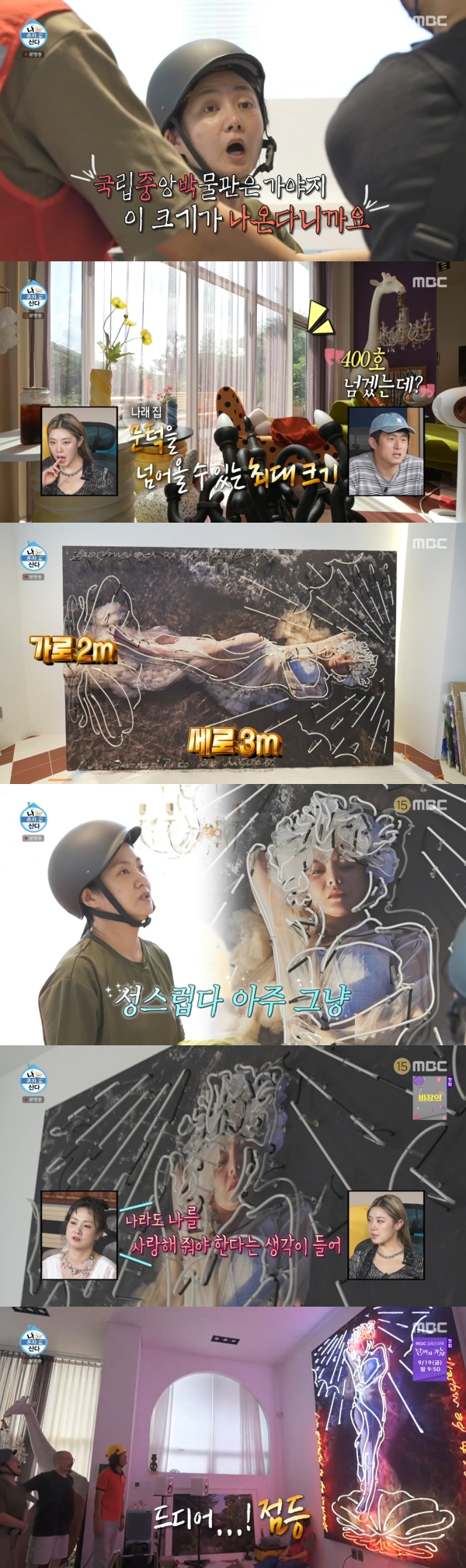ÇØ´ç ¿þµù »çÁøÀº ¼¼·Î 3m, °¡·Î 2mÀÇ ÃÊ´ëÇü ³×¿Â»çÀÎ ÀÛǰÀ¸·Î ź»ýÇØ ¸ðµÎ¸¦ ³î¶ó°Ô Çß´Ù. ±×°¡ ÀÇ·ÚÇÑ ÀÛǰÀº ÁýÀÇ ¹®ÅÎÀ» ³ÑÀ» ¼ö ÀÖ´Â ÃÖ´ë Å©±â¿´°í, ÀÌ¿¡ ´ëÇØ ÀÛ°¡´Â "±¹¸³Áß¾Ó¹Ú¹°°üÀº °¡¾ß ÀÌ »çÀÌÁî°¡ ÀÖÀ» °Í"À̶ó°í ¹àÇû´Ù.