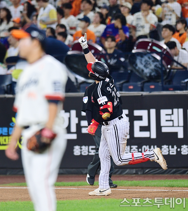 [´ëÀü=½ºÆ÷Ã÷Åõµ¥ÀÌ ±Ç±¤ÀÏ ±âÀÚ] 2025 ½ÅÇÑÀºÇà SOL Bank KBO¸®±× LG Æ®À©½º¿Í ÇÑÈÀ̱۽ºÀÇ °æ±â°¡ 27ÀÏ ´ëÀü ÇÑÈ»ý¸í º¼ÆÄÅ©¿¡¼ ¿·È´Ù. LG ¿À½ºÆ¾ÀÌ 6ȸÃÊ ¼Ö·Î Ȩ·±À» Ä¡°í ÀÖ´Ù. 2025.09.27.