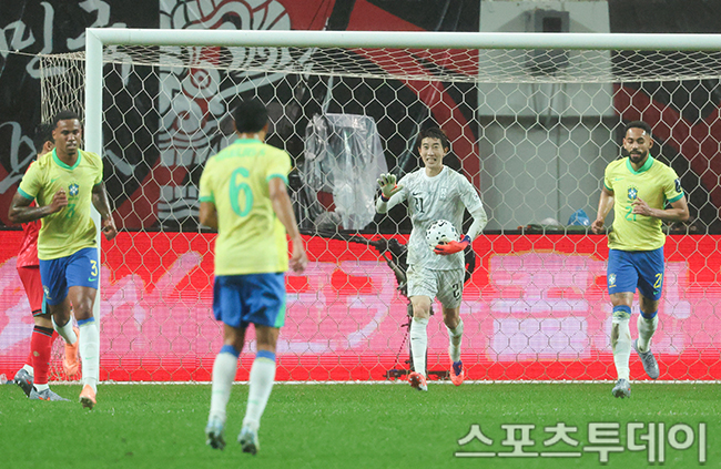[½ºÆ÷Ã÷Åõµ¥ÀÌ ÆØÇöÁØ ±âÀÚ] 10ÀÏ ¼¿ï¿ùµåÄŰæ±âÀå¿¡¼ ¿¸° Ã౸±¹°¡´ëÇ¥ÆÀ Çѱ¹°ú ºê¶óÁúÀÇ Ä£¼±°æ±â, Çѱ¹ Á¶Çö¿ì°¡ °øÀ» Àâ°í ÀÖ´Ù. 2025.10.10.