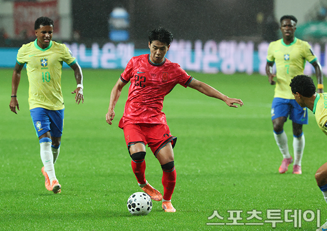 [½ºÆ÷Ã÷Åõµ¥ÀÌ ÆØÇöÁØ ±âÀÚ] 10ÀÏ ¼¿ï¿ùµåÄŰæ±âÀå¿¡¼ ¿¸° Ã౸±¹°¡´ëÇ¥ÆÀ Çѱ¹°ú ºê¶óÁúÀÇ Ä£¼±°æ±â, Çѱ¹ ¼³¿µ¿ì°¡ °ø°ÝÇϰí ÀÖ´Ù. 2025.10.10.