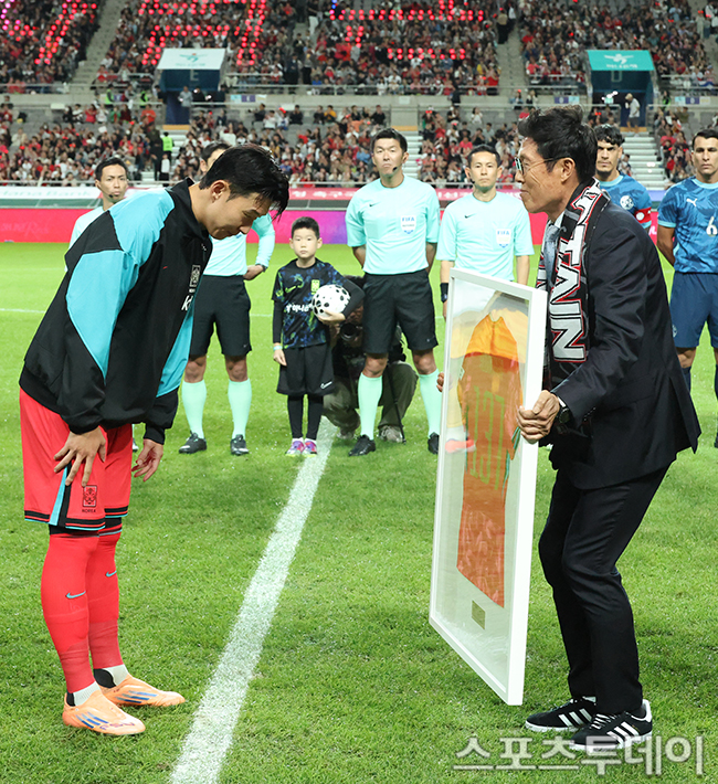 [½ºÆ÷Ã÷Åõµ¥ÀÌ ÆØÇöÁØ ±âÀÚ] 14ÀÏ ¼¿ï¿ùµåÄŰæ±âÀå¿¡¼ ¿¸° Ã౸ ±¹°¡´ëÇ¥ÆÀ Çѱ¹°ú ÆÄ¶ó°úÀÌÀÇ Ä£¼±°æ±â, ĸƾ ¼ÕÈï¹ÎÀÇ 137°æ±â ÃÖ´ÙÃâÀü ±â³ä½ÄÀÌ ¿¸®°í ÀÖ´Ù. »çÁø ¿À¸¥ÂÊÀº Ã౸·¹Àüµå Â÷¹ü±Ù. 2025.10.14.