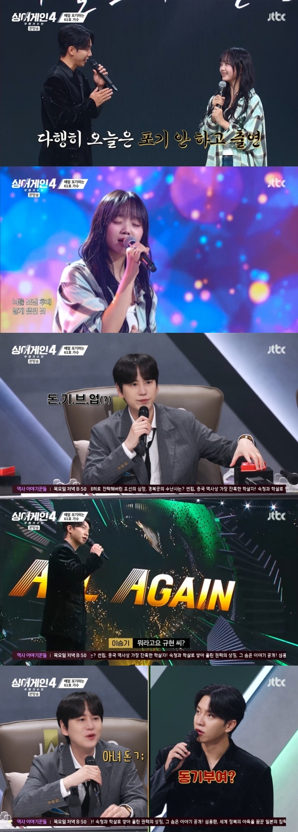 61È£ °¡¼ö°¡ ½É»çÀ§¿øµéÀÇ "Æ÷±âÇÏÁö ¸¶"¶ó´Â °Ý·Á¸¦ ¹ÞÀ¸¸ç ¹«´ë¸¦ ³»·Á°£ °¡¿îµ¥, ±ÔÇöÀÌ ³ªÁö¸·ÇÏ°Ô "µ· ±âºê ¾÷(Don't give up)"À̶ó°í ¸»Çß´Ù. À̸¦ À߸ø µéÀº À̽±Ⱑ "¹¹¶ó°í¿ä ±ÔÇö ¾¾? µ¿±âºÎ¿©?"¶ó°í ¹°¾î ¿ôÀ½À» ¾È°å´Ù.