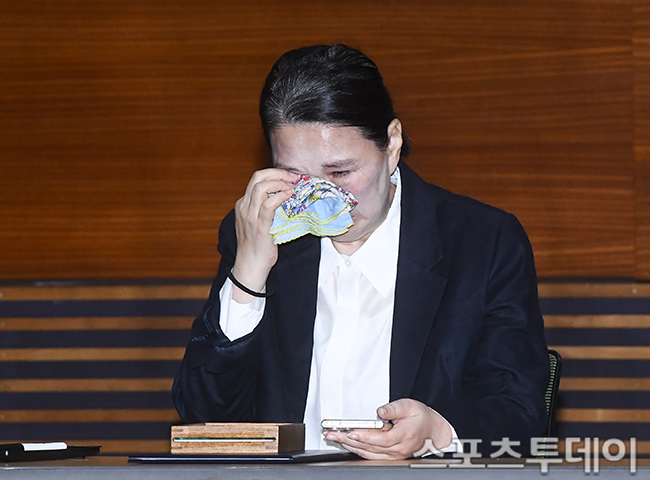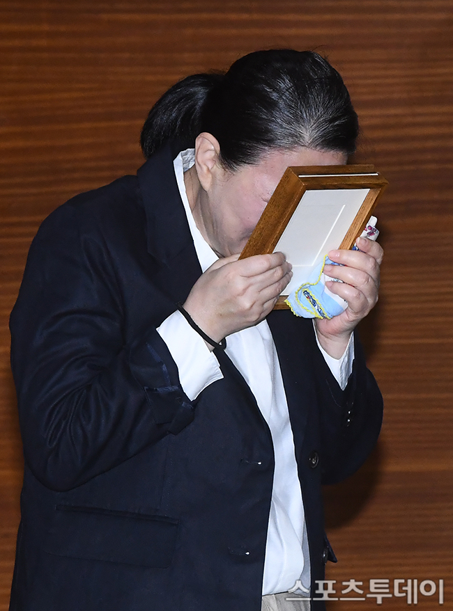 °í ¿À¿ä¾È³ª ¾î¸Ó´Ï°¡ ¸í¿¹ »ç¿øÁõÀ» µé°í ´«¹°À» È긮°í ÀÖ´Ù |