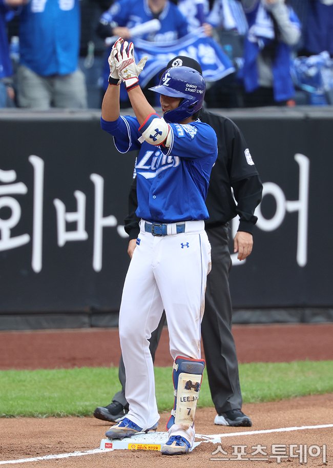 [´ëÀü=½ºÆ÷Ã÷Åõµ¥ÀÌ ÆØÇöÁØ ±âÀÚ] 18ÀÏ ´ëÀüÇÑÈ»ý¸íº¼ÆÄÅ©¿¡¼ ¿¸° 2025 KBO¸®±× Æ÷½ºÆ®½ÃÁð Ç÷¹ÀÌ¿ÀÇÁ »ï¼º ¶óÀÌ¿ÂÁî¿Í ÇÑÈ À̱۽ºÀÇ 1Â÷Àü, 2ȸÃÊ ¹«»ç 2,3·ç »ï¼º ÀÌÀçÇöÀÌ 2ŸÁ¡ 3·çŸ¸¦ Ä¡°í ÀÖ´Ù. 2025.10.18.