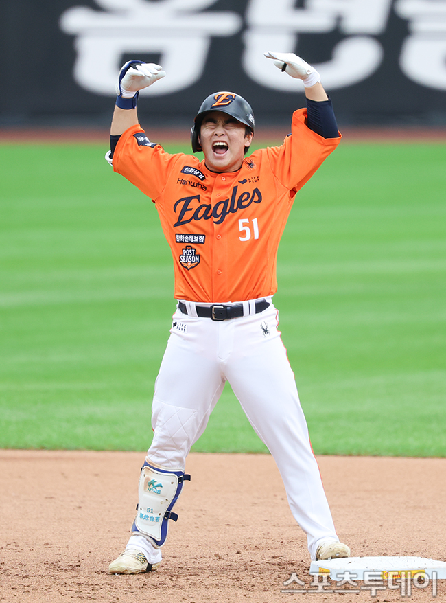 [´ëÀü=½ºÆ÷Ã÷Åõµ¥ÀÌ ÆØÇöÁØ ±âÀÚ] 18ÀÏ ´ëÀüÇÑÈ­»ý¸íº¼ÆÄÅ©¿¡¼­ ¿­¸° 2025 KBO¸®±× Æ÷½ºÆ®½ÃÁð Ç÷¹ÀÌ¿ÀÇÁ »ï¼º ¶óÀÌ¿ÂÁî¿Í ÇÑÈ­ À̱۽ºÀÇ 1Â÷Àü, 2ȸ¸» 2»ç ¸¸·ç ÇÑÈ­ ¹®ÇöºóÀÌ ½Ï¾µÀÌ ¾ÈŸ¸¦ ¶§¸®°í ÀÖ´Ù. 2025.10.18.
