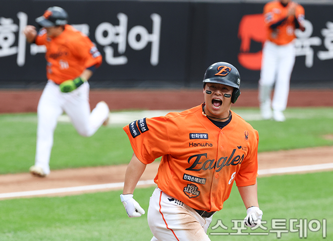 [´ëÀü=½ºÆ÷Ã÷Åõµ¥ÀÌ ÆØÇöÁØ ±âÀÚ] 18ÀÏ ´ëÀüÇÑÈ­»ý¸íº¼ÆÄÅ©¿¡¼­ ¿­¸° 2025 KBO¸®±× Æ÷½ºÆ®½ÃÁð Ç÷¹ÀÌ¿ÀÇÁ »ï¼º ¶óÀÌ¿ÂÁî¿Í ÇÑÈ­ À̱۽ºÀÇ 1Â÷Àü, 2ȸ¸» 2»ç 3·ç ÇÑÈ­ ³ë½ÃȯÀÌ Àû½ÃŸ¸¦ ¶§¸®°í ÀÖ´Ù. 2025.10.18.