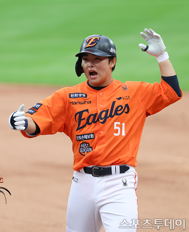 [´ëÀü=½ºÆ÷Ã÷Åõµ¥ÀÌ ÆØÇöÁØ ±âÀÚ] 18ÀÏ ´ëÀüÇÑÈ­»ý¸íº¼ÆÄÅ©¿¡¼­ ¿­¸° 2025 KBO¸®±× Æ÷½ºÆ®½ÃÁð Ç÷¹ÀÌ¿ÀÇÁ »ï¼º ¶óÀÌ¿ÂÁî¿Í ÇÑÈ­ À̱۽ºÀÇ 1Â÷Àü, 4ȸ¸» 1»ç 1·ç ÇÑÈ­ ¹®ÇöºóÀÌ ¾ÈŸ¸¦ Ä¡°í ÀÖ´Ù. 2025.10.18.