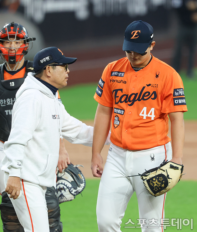[´ëÀü=½ºÆ÷Ã÷Åõµ¥ÀÌ ÆØÇöÁØ ±âÀÚ] 18ÀÏ ´ëÀüÇÑÈ­»ý¸íº¼ÆÄÅ©¿¡¼­ ¿­¸° 2025 KBO¸®±× Æ÷½ºÆ®½ÃÁð Ç÷¹ÀÌ¿ÀÇÁ »ï¼º ¶óÀÌ¿ÂÁî¿Í ÇÑÈ­ À̱۽ºÀÇ 1Â÷Àü, 9ȸÃÊ ÇÑÈ­ ±è¼­ÇöÀÌ 2Á¡À» ³»¾îÁÖ°í °­ÆÇµÇ°í ÀÖ´Ù. 2025.10.18.