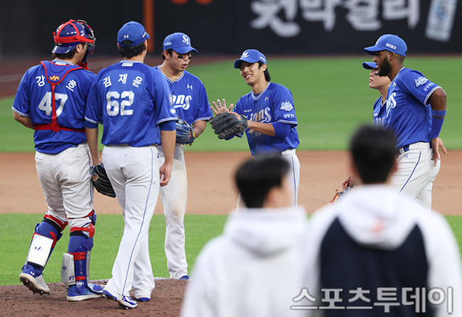 [´ëÀü=½ºÆ÷Ã÷Åõµ¥ÀÌ ÆØÇöÁØ ±âÀÚ] 19ÀÏ ´ëÀüÇÑÈ­»ý¸íº¼ÆÄÅ©¿¡¼­ ¿­¸° 2025 KBO¸®±× Æ÷½ºÆ®½ÃÁð Ç÷¹ÀÌ¿ÀÇÁ »ï¼º ¶óÀÌ¿ÂÁî¿Í ÇÑÈ­ À̱۽ºÀÇ 2Â÷Àü, »ï¼ºÀÌ 7-3À¸·Î ½Â¸®Çϰí ÀÖ´Ù. 2025.10.19.