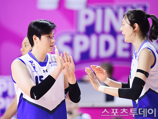 Çö´ë°Ç¼³ ±èÈñÁø, ¾çÈ¿ÁøÀÌ µæÁ¡ ¼º°ø¿¡ ÇÏÀÌÆÄÀ̺긦 Çϰí ÀÖ´Ù. 2025.10.22.