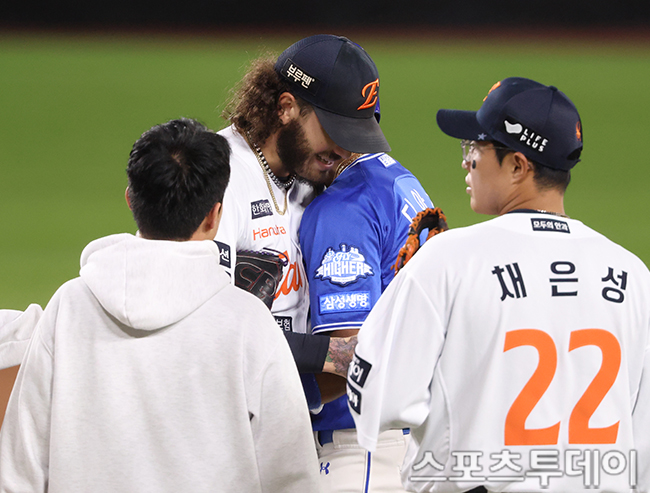 [´ëÀü=½ºÆ÷Ã÷Åõµ¥ÀÌ ÆØÇöÁØ ±âÀÚ] 24ÀÏ ´ëÀüÇÑÈ­»ý¸íº¼ÆÄÅ©¿¡¼­ ¿­¸° 2025 KBO¸®±× Æ÷½ºÆ®½ÃÁð »ï¼º ¶óÀÌ¿ÂÁî¿Í ÇÑÈ­ À̱۽ºÀÇ Ç÷¹ÀÌ¿ÀÇÁ 5Â÷Àü, 3ȸÃÊ 1»ç 1·ç »ï¼º µð¾ÆÁîÀÇ Å¸±¸¿¡ ¸ÂÀº ÇÑÈ­ Æù¼¼°¡ µð¾ÆÁî¿¡°Ô ±¦Âú´Ù¸ç À̾߱⸦ Çϰí ÀÖ´Ù. 2025.10.24.
