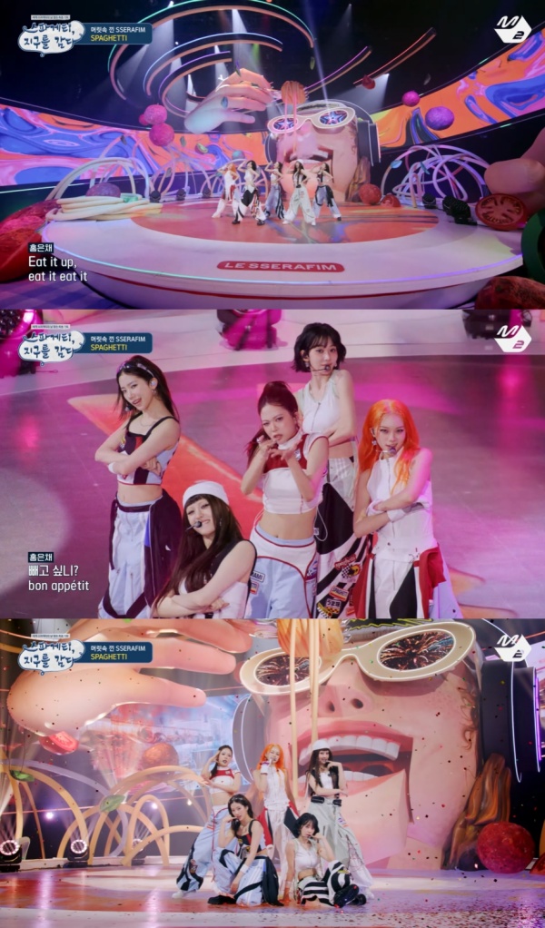 ÄĹé ÇÁ·Î±×·¥ÀÇ 'ű'Àº ŸÀÌÆ²°î '½ºÆÄ°ÔƼ'(SPAGHETTI (feat. j-hope of BTS)) ¹«´ë¿´´Ù. ÀÌ °îÀº ¸Ó¸´¼Ó¿¡¼ ÀÚ²Ù ¸Éµ¹°í »ý°¢³ª´Â ¸£¼¼¶óÇËÀ» ÀÌ¿¡ ³¤ ½ºÆÄ°ÔƼ¿¡ ºñÀ¯ÇÑ ³ë·¡´Ù. "¾Ã°í ¶â°í ¸Àº¸°í Áñ±â´Ù °¡¸é µÅ" "³» ±èÄ¡ Æ÷Áî´Â ¿©ÀüÈ÷ priceless" °°ÀÌ ¿ä¸®¿Í ¿¬°èµÈ µ¶Æ¯ÇÑ °¡»ç°¡ 'µè´Â ¸À'À» ¼±»çÇÑ´Ù. ´Ù¼¸ ¸â¹ö´Â ½ºÆÄ°ÔƼ Á¢½Ãó·³ ²Ù¹Î ¼¼Æ®¿¡¼ °ø¿¬À» ÆîÃÆ´Ù.