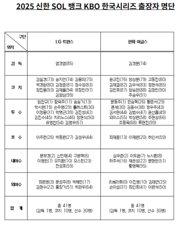| Çѱ¹½Ã¸®Áî ÃâÀåÀÚ ¸í´Ü / »çÁø=KBO Á¦°ø |