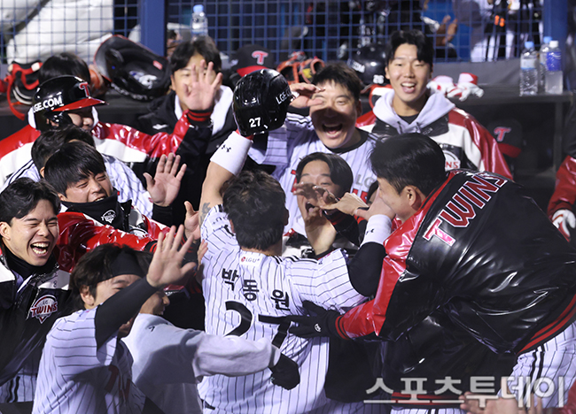 [½ºÆ÷Ã÷Åõµ¥ÀÌ ÆØÇöÁØ ±âÀÚ] 27ÀÏ ¼¿ï Àá½Ç¾ß±¸Àå¿¡¼ ¿¸° 2025 KBO¸®±× LG Æ®À©½º¿Í ÇÑÈ À̱۽ºÀÇ Çѱ¹½Ã¸®Áî 2Â÷Àü, 2ȸ¸» ¹«»ç 2,3·ç LG ±¸º»ÇõÀÇ 2ŸÁ¡ Àû½ÃŸ ¶§ ȨÀÎÇÑ ¹Úµ¿¿øÀÌ µ¿·áµéÀÇ ÃàÇϸ¦ ¹Þ°í ÀÖ´Ù. 2025.10.27.