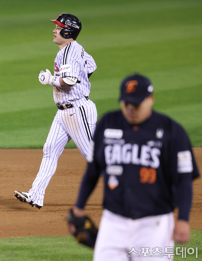 [½ºÆ÷Ã÷Åõµ¥ÀÌ ÆØÇöÁØ ±âÀÚ] 27ÀÏ ¼­¿ï Àá½Ç¾ß±¸Àå¿¡¼­ ¿­¸° 2025 KBO¸®±× LG Æ®À©½º¿Í ÇÑÈ­ À̱۽ºÀÇ Çѱ¹½Ã¸®Áî 2Â÷Àü, 3ȸ 2»ç 1·ç LG ¹Úµ¿¿øÀÌ È¨·±À» ³¯¸®°í ÀÖ´Ù. 2025.10.27.