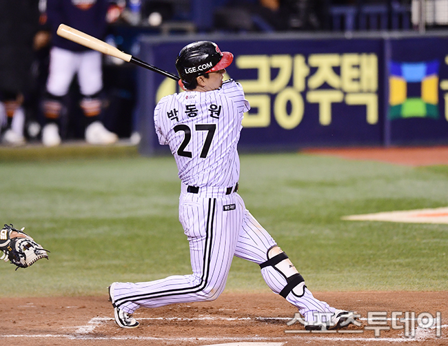 [½ºÆ÷Ã÷Åõµ¥ÀÌ ±Ç±¤ÀÏ ±âÀÚ] 2025 ½ÅÇÑÀºÇà SOL Bank KBO¸®±× Çѱ¹½Ã¸®Áî 2Â÷Àü ÇÑÈ­ À̱۽º¿Í LG Æ®À©½ºÀÇ °æ±â°¡ 27ÀÏ ¼­¿ï Àá½Ç¾ß±¸Àå¿¡¼­ ¿­·È´Ù. LG ¹Úµ¿¿øÀÌ 3ȸ¸» 1»ç1·ç¿¡¼­ Åõ·±È¨·±À» Ä¡°í ÀÖ´Ù. 2025.10.27.