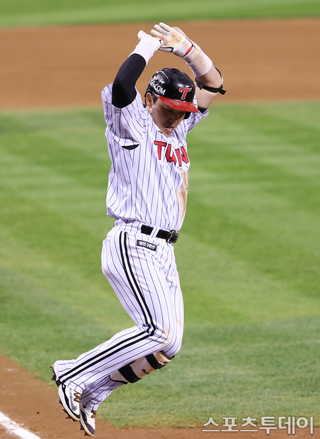 [½ºÆ÷Ã÷Åõµ¥ÀÌ ÆØÇöÁØ ±âÀÚ] 27ÀÏ ¼­¿ï Àá½Ç¾ß±¸Àå¿¡¼­ ¿­¸° 2025 KBO¸®±× LG Æ®À©½º¿Í ÇÑÈ­ À̱۽ºÀÇ Çѱ¹½Ã¸®Áî 2Â÷Àü, 3ȸ 2»ç 1·ç LG ¹Úµ¿¿øÀÌ È¨·±À» ³¯¸®°í ÀÖ´Ù. 2025.10.27.
