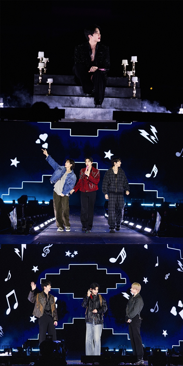 Á¦ÀÌÈ©°ú Á¤±¹Àº °ø¿¬ ¸»¹Ì, ¹æÅº¼Ò³â´ÜÀÇ °îÀ» ±¸¼ºÇÑ ¸Þµé¸® ¹«´ë ¶§ ´Ù½Ã±Ý ¹«´ë¿¡ ¿Ã¶ó °ü·ÏÀÇ È£ÈíÀ» »Ë³Â´Ù. ¼¼ »ç¶÷Àº 'IDOL' 'So What' 'My Universe'¸¦ ºÎ¸£¸ç °ü°´°ú ÇÔ²² È£ÈíÇϰí Áñ±â´Â ¹«´ë¸¦ ¸¸µé¾ú´Ù.