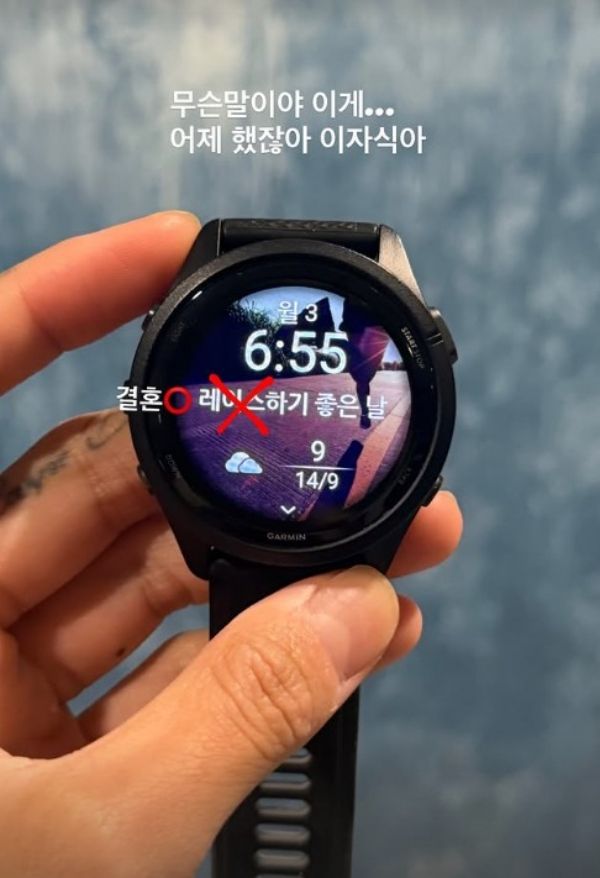 »çÁø¿¡´Â '·¹À̽º Çϱâ ÁÁÀº ³¯'À̶ó´Â ¾Ë¸²¿¡ X Ç¥½Ã°¡ µÇ¾î ÀÖ°í, ´ë½Å '°áÈ¥ ¡Û'¶ó°í ÀûÇôÀÖ¾î ´«±æÀ» ²ø¾ú´Ù.