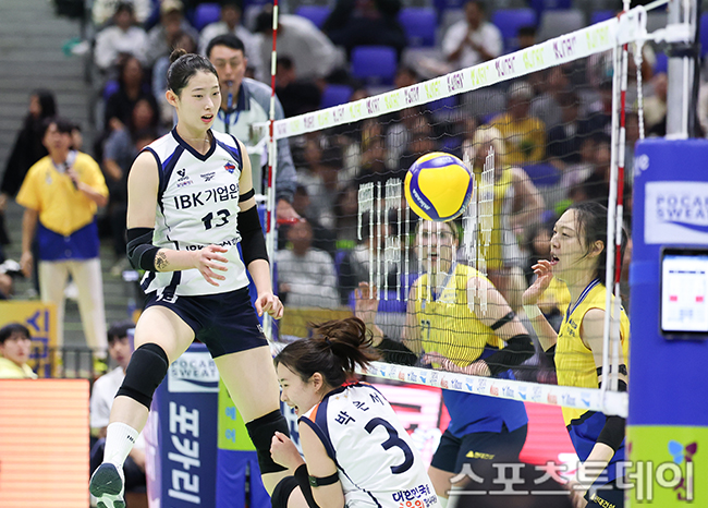 [¼ö¿ø=½ºÆ÷Ã÷Åõµ¥ÀÌ ÆØÇöÁØ ±âÀÚ] 4ÀÏ °æ±âµµ ¼ö¿ø½Ç³»Ã¼À°°ü¿¡¼ ¿¸° V¸®±× ¿©ÀںΠÇö´ë°Ç¼³°ú IBK±â¾÷ÀºÇàÀÇ °æ±â, ±â¾÷ÀºÇàÀÌ °ø°Ý ±âȸ¸¦ ³õÄ¡°í ÀÖ´Ù. 2025.11.04.
