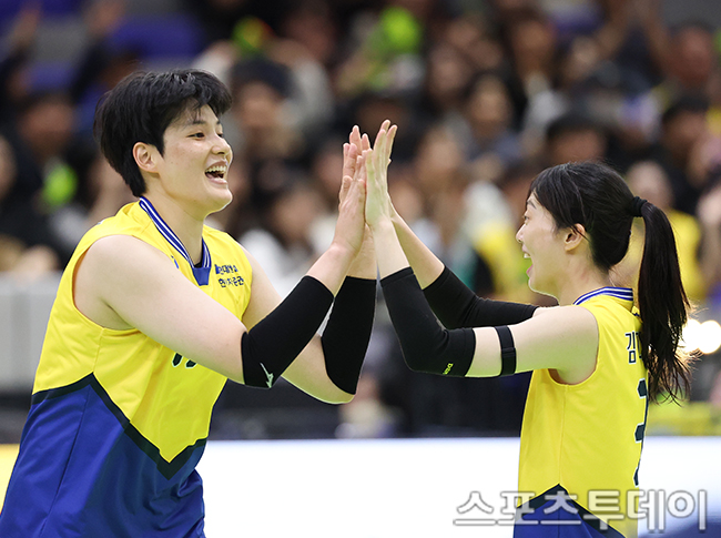 [¼ö¿ø=½ºÆ÷Ã÷Åõµ¥ÀÌ ÆØÇöÁØ ±âÀÚ] 4ÀÏ °æ±âµµ ¼ö¿ø½Ç³»Ã¼À°°ü¿¡¼ ¿¸° V¸®±× ¿©ÀںΠÇö´ë°Ç¼³°ú IBK±â¾÷ÀºÇàÀÇ °æ±â, Çö´ë°Ç¼³ ±èÈñÁøÀÌ ±è´ÙÀΰú ±â»µÇϰí ÀÖ´Ù. 2025.11.04.