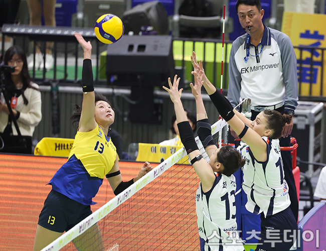 [¼ö¿ø=½ºÆ÷Ã÷Åõµ¥ÀÌ ÆØÇöÁØ ±âÀÚ] 4ÀÏ °æ±âµµ ¼ö¿ø½Ç³»Ã¼À°°ü¿¡¼ ¿¸° V¸®±× ¿©ÀںΠÇö´ë°Ç¼³°ú IBK±â¾÷ÀºÇàÀÇ °æ±â, Çö´ë°Ç¼³ Á¤ÁöÀ±ÀÌ °ø°ÝÇϰí ÀÖ´Ù. 2025.11.04.