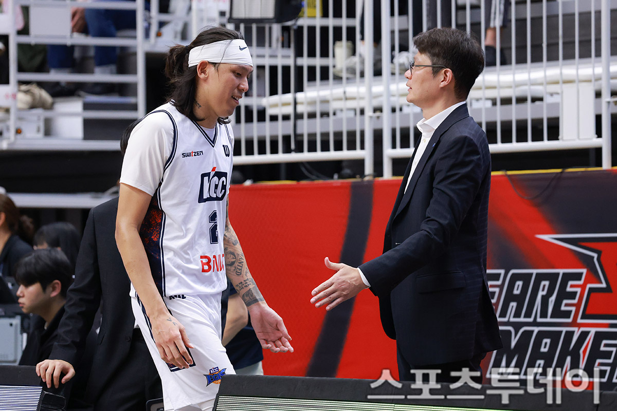 À̳¯ ºÎ»ê KCC°¡ ¼ö¿ø KT ¼Ò´ÐºÕÀ» 89:81·Î ½Â¸®Çß´Ù. KCC ÃÖÁØ¿ëÀÌ 5¹ÝÄ¢ ÅðÀåÀ» ´ÙÇϰí ÀÖ´Ù. 2025.11.08.