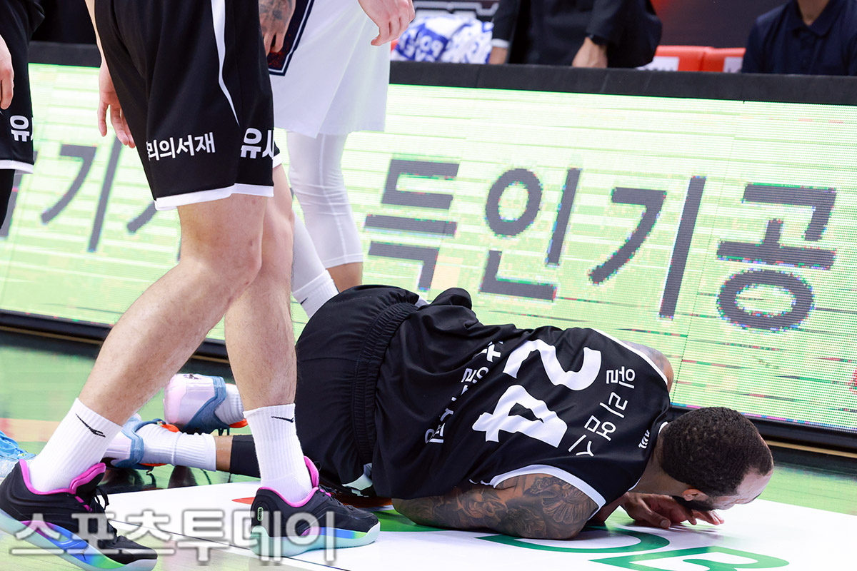 À̳¯ ºÎ»ê KCC°¡ ¼ö¿ø KT ¼Ò´ÐºÕÀ» 89:81·Î ½Â¸®Çß´Ù. KTµ¥¸¯ Àª¸®¾ö½º°¡ KCC ÃÖÁØ¿ëÀÇ ¹«¸¿¡ °É·Á ³Ñ¾îÁö°í ÀÖ´Ù. 2025.11.08.