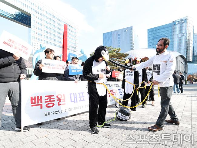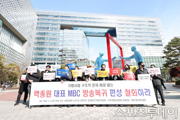[½ºÆ÷Ã÷Åõµ¥ÀÌ ±Ç±¤ÀÏ ±âÀÚ] 11ÀÏ ¼¿ï ¸¶Æ÷±¸ »ó¾Ïµ¿ MBC ½Å»ç¿Á ¾Õ ±¤Àå¿¡¼ Àü±¹°¡¸ÍÁ¡ÁÖÇùÀÇȸ, ¿¬µ·º¼Ä«Ã÷°¡¸ÍÁ¡ÁÖÇùÀÇȸ, ´ëÇѰ¡¸Í°Å·¡»çÇùȸ, Âü¿©¿¬´ë ¹Î»ýÈñ¸Áº»ºÎ °ü°èÀÚµéÀÌ MBC '³²±ØÀÇ ¼ÎÇÁ' Æí¼ºÃ¶È¸ Ã˱¸ ±âÀÚȸ°ßÀ» ¿°í ÀÖ´Ù. 2025.11.11.