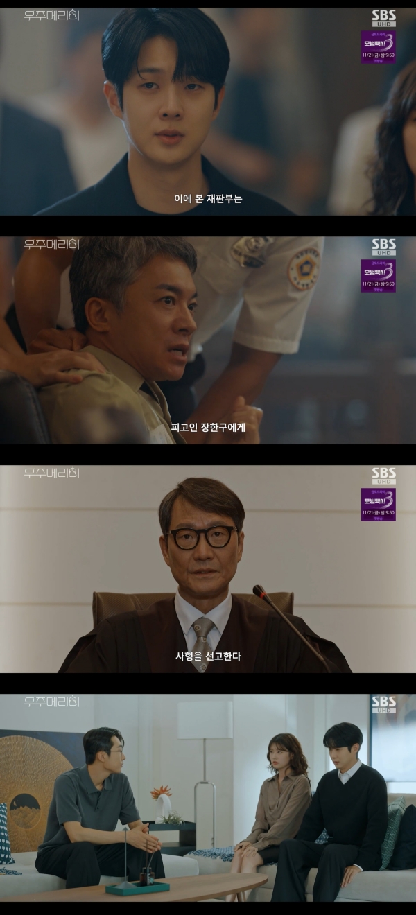 14ÀÏ ¹æ¼ÛµÈ SBS ±ÝÅäµå¶ó¸¶ '¿ìÁÖ¸Þ¸®¹Ì' 11ȸ¿¡´Â ÀåÇѱ¸(±è¿µ¹Î)°¡ »çÇüÀ» ¼±°í¹Þ´Â ¸ð½À°ú, ±è¿ìÁÖ(ÃÖ¿ì½Ä)¿¡°Ô ¶Ç ´Ù¸¥ À§±â°¡ ã¾Æ¿À´Â °úÁ¤ÀÌ ±×·ÁÁ³´Ù.