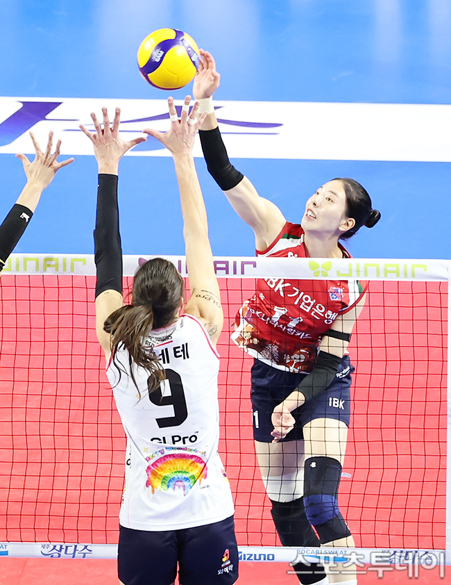 IBK±â¾÷ÀºÇà À°¼¿µÀÌ °ø°ÝÀ» Çϰí ÀÖ´Ù. 2025.12.04.