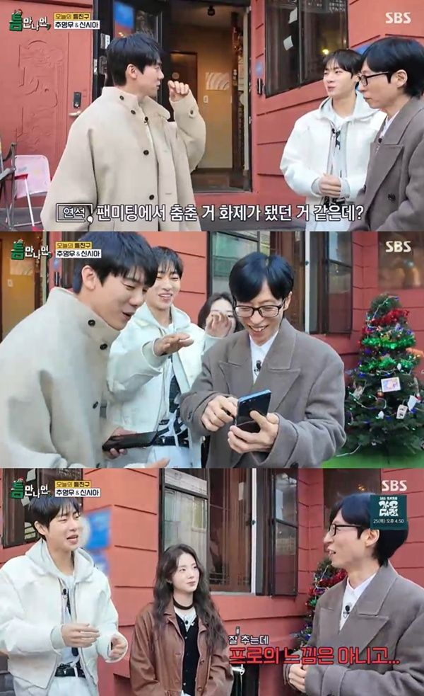 À¯Àç¼®ÀÌ "¿À´Ã Æ´Ä£±¸´Â µü ´í½ºÆÀÀÌ´Ù"¶ó°í ÇÏÀÚ À¯¿¬¼®Àº "Ãß¿µ¿ì°¡ ÆÒ¹ÌÆÃ¿¡¼ Ãã Ãá °Å ÈÁ¦°¡ µÈ °Í °°Àºµ¥"¶ó°í ¸»Çß´Ù.