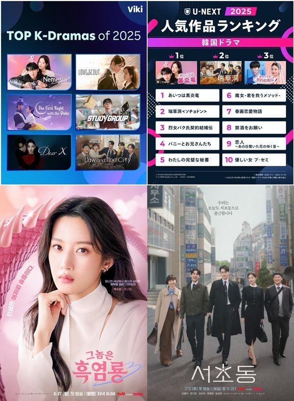ÃÖ±Ù ±Û·Î¹ú OTT ¶óÄíÅÙ ºñŰ(Rakuten Viki)¿Í ÀϺ» ¸ÞÀÌÀú ½ºÆ®¸®¸Ó À¯³Ø½ºÆ®(U-NEXT)°¡ ¹ßÇ¥ÇÑ '2025³â Àαâ Çѱ¹ µå¶ó¸¶' ¸®½ºÆ®¿¡ ¹®°¡¿µ ÁÖ¿¬ÀÇ '±×³ðÀº Èæ¿°·æ' °ú '¼Ãʵ¿' ÀÌ ³ª¶õÈ÷ À̸§À» ¿Ã·È´Ù.
