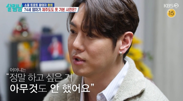 21ÀÏ ¹æ¼ÛµÈ KBS2 '»ì¸²ÇÏ´Â ³²ÀÚµé2'(ÀÌÇÏ '»ì¸²³²')¿¡¼ ȯÈñ´Â ´ëÈ ´ÜÀýµÈ ¾î¸Ó´Ï¿Í °ü°è ¹× °¡Á¤»ç¸¦ ¹àÇû´Ù.
