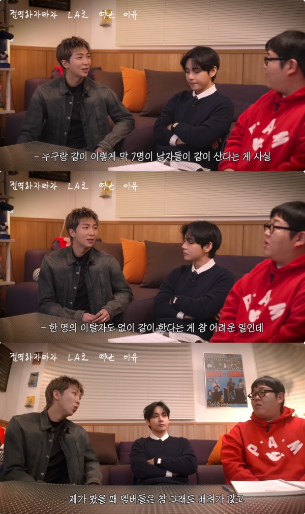ºß´Â ¼ÛÄ·ÇÁ¿¡ ´ëÇØ "ÀÛ¾÷À» ½À°üȽÃÄÑ¾ß Çß´Ù. µÎ ´Þ µ¿¾È »ì¸é¼ °è¼Ó ÀÛ¾÷½Ç¿¡ °¡¼ ¾ÆÀ̵ð¾î¸¦ Â¥³»¾ß µÇ°í, ¸á·Îµð¸¦ ¸¸µé¾î¾ß µÇ°í, °¡»ç Å׸¶¸¦ »ý¼ºÇس»¾ß ÇÏ´Â ½Ã½ºÅÛÀÌ Ã³À½ ÇØº¸´Ï±î ½Å±âÇϱ⵵ ÇÏ¸é¼ Àç¹Õ¾ú´Ù. ±×¸®°í ȯ°æÀÌ LAÁö ¾Ê³ª. ±×·¡¼ Àç¹Ì³µ´Ù"°í ¸»Çß´Ù. RM ¶ÇÇÑ "³¯¾¾°¡ »ç¶÷ÇÑÅ× ÀÌ·¸°Ô±îÁö ¿µÇâÀ» ¹ÌÄ¡´ÂÁö (¸ô¶ú´Ù). µÎ ´Þ µ¿¾È ºñ¶û È帰 ÀûÀÌ ´Ü ÇÑ ¹øµµ ¾ø¾ú´Ù"°í ¸¸Á·°¨À» Ç¥Çß´Ù.