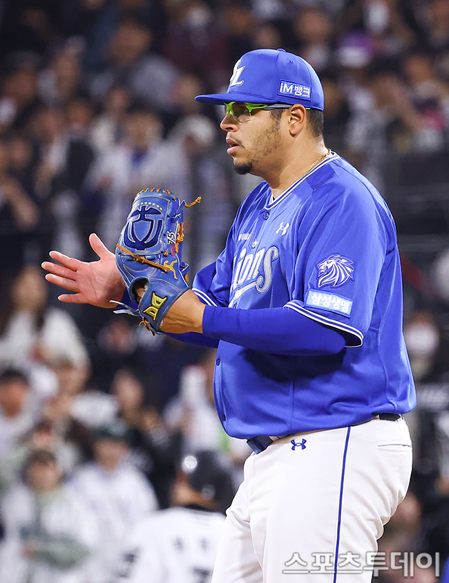 [¼ö¿ø=½ºÆ÷Ã÷Åõµ¥ÀÌ ÆØÇöÁØ ±âÀÚ] 3ÀÏ ¼ö¿øKTÀ§ÁîÆÄÅ©¿¡¼ ¿¸° 2026 KBO¸®±× »ï¼º ¶óÀÌ¿ÂÁî¿Í KT À§ÁîÀÇ °æ±â, 5ȸ¸» »ï¼º ÈĶ󵵰¡ ÀÌÀçÇöÀÇ È£¼öºñ¿¡ ¹Ú¼ö¸¦ º¸³»°í ÀÖ´Ù. 2026.04.03.