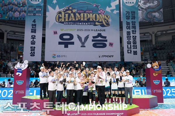 À̳¯ GSĮŨ½º°¡ ¼¼Æ®½ºÄÚ¾î 3-1(25-15 19-25 25-20 25-20)·Î èÇǾð°áÁ¤Àü ¿ì½ÂÀ» Â÷ÁöÇß´Ù.2026.04.05.
