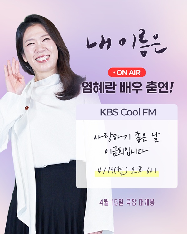 13ÀÏ Àú³á 6½Ã¿¡ ¹æ¼ÛµÇ´Â KBS Cool FM '»ç¶ûÇϱâ ÁÁÀº ³¯ À̱ÝÈñÀÔ´Ï´Ù'¿¡ ¿°Çý¶õÀÌ Ã⿬ÇÑ´Ù.