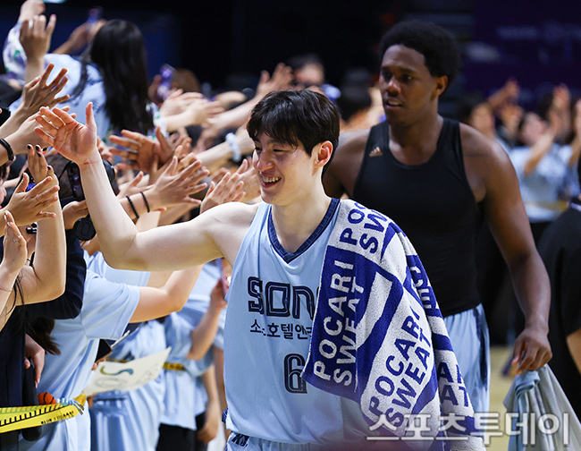 [°í¾ç(°æ±â)=½ºÆ÷Ã÷Åõµ¥ÀÌ ÆØÇöÁØ ±âÀÚ] 16ÀÏ °æ±âµµ °í¾çüÀ°°ü¿¡¼ ¿¸° 2025-2026 KBL 6° Ç÷¹ÀÌ¿ÀÇÁ °í¾ç ¼Ò³ë¿Í ¼¿ï SKÀÇ 3Â÷Àü, ¼Ò³ë°¡ 66-65·Î ½Â¸®Çϸç 4°¿¡ ÁøÃâÇß´Ù. ÀÌÁ¤Çö°ú ³ªÀÌÆ®°¡ ÆÒµé°ú ÇÏÀÌÆÄÀ̺긦 Çϰí ÀÖ´Ù. 2026.04.16.