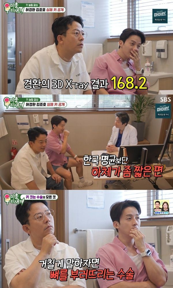 Çã°æÈ¯Àº "ÀúÈñµµ ¼ö¼úÀÌ µÇ³Ä"¸ç Á¤È®ÇÑ »ó´ãÀ» ¹Þ±â ½ÃÀÛÇß´Ù. ¸ÕÀú Çã°æÈ¯Àº Ű ÃøÁ¤¿¡ µé¾î°¬°í, °Ë»ç °á°ú 168.2cm·Î ³ª¿Ô´Ù. ÀÇ»ç´Â Çã°æÈ¯ÀÇ ½Åü ºñÀ²¿¡ ´ëÇØ "Çѱ¹ Æò±Õº¸´Ù ÇÏü°¡ ªÀº Æí"À̶ó°í Àû³ª¶óÇÏ°Ô ºÐ¼®Çß´Ù.