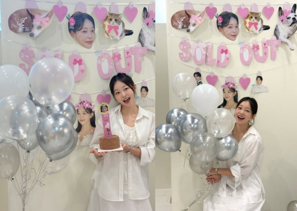 »çÁø ¼Ó ±è°¡ÀºÀº '¼Öµå ¾Æ¿ô(SOLD OUT)'À̶ó´Â ¹®±¸°¡ ºÙÀº º® ¾Õ¿¡¼ Æ÷Á ÃëÇϰí ÀÖ´Ù. Ä£±¸µéÀÌ ÁغñÇÑ ºê¶óÀÌ´ú »þ¿ö¿¡¼ ǰÀý³à µî±ØÀ» ±â³äÇÏ¸ç ¹Ì¼Ò¸¦ Áþ°í ÀÖ´Ù.