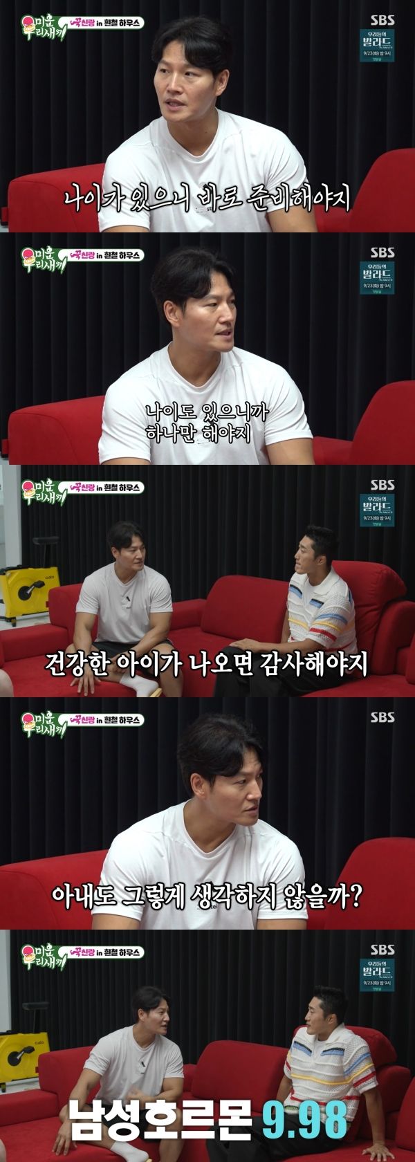 ÇÑÆí ±èÁ¾±¹Àº 2¼¼ °èȹ¿¡ ´ëÇØ "³ªÀ̰¡ ÀÖÀ¸´Ï±î ÇÑ ¸í ÇØ¾ßÁö"¶ó¸ç "°Ç°ÇÑ ¾ÆÀ̰¡ ³ª¿À¸é °¨»çÇÒ °Í"À̶ó°í ¹àÇû´Ù. ±×·¯¸é¼ "ÃÖ±Ù Á¤ÀÚ °Ë»ç¸¦ Çߴµ¥ 2¾ï1500¸¶¸®¿´´Ù. ³²¼º È£¸£¸óÀº 9.98·Î ³ª¿Ô´Ù"°í ÀüÇß´Ù.