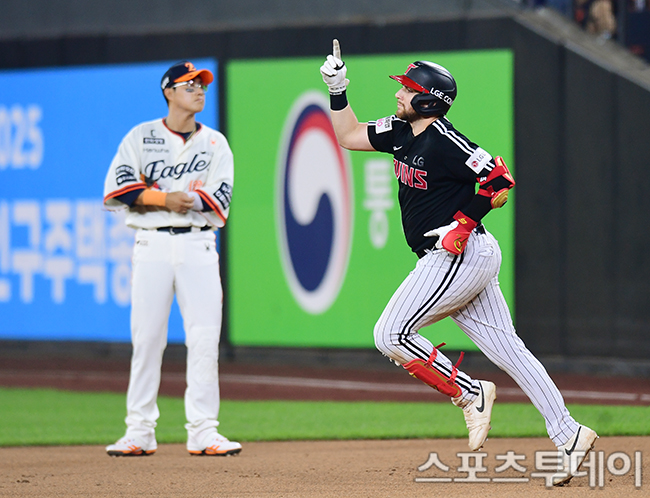 [´ëÀü=½ºÆ÷Ã÷Åõµ¥ÀÌ ±Ç±¤ÀÏ ±âÀÚ] 2025 ½ÅÇÑÀºÇà SOL Bank KBO¸®±× LG Æ®À©½º¿Í ÇÑÈÀ̱۽ºÀÇ °æ±â°¡ 27ÀÏ ´ëÀü ÇÑÈ»ý¸í º¼ÆÄÅ©¿¡¼ ¿·È´Ù. LG ¿À½ºÆ¾ÀÌ 6ȸÃÊ ¼Ö·Î Ȩ·±À» Ä¡°í ÀÖ´Ù. 2025.09.27.