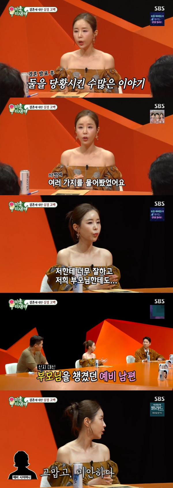¼ÀåÈÆÀÌ "°áÈ¥À» °á½ÉÇÑ °áÁ¤ÀûÀÎ ÀÌÀ¯°¡ ÀÖ³Ä"°í ¹¯ÀÚ, ½ÅÁö´Â "ÀÏ´Ü ÀúÇÑÅ× ÀßÇϱ⵵ Çϰí, ºÎ¸ð´ÔÇÑÅ×µµ ÀßÇÑ´Ù. Á¦°¡ ¾ø¾îµµ ºÎ¸ð´ÔÀ̶û Áý¿¡ °°ÀÌ ÀÖÀ» Á¤µµ´Ù"¶ó¸ç "Á¦°¡ Çà»ç ¶§¹®¿¡ Áý¿¡ ¾ø¾ú´Ù. ºÎ¸ð´ÔÀÌ ¿Ã¶ó¿À¼Ì´Âµ¥ ½Ä»ç¸¦ Â÷¸®°í °°ÀÌ Àç¹Õ°Ô µµ¶õµµ¶õ ÀÖ¾ú´Ù. ±×·± Á¡ÀÌ ÁÁ´Ù. ºÎ¸ð´ÔÀÌ ¿¹»µÇÑ´Ù"°í ´äÇß´Ù.