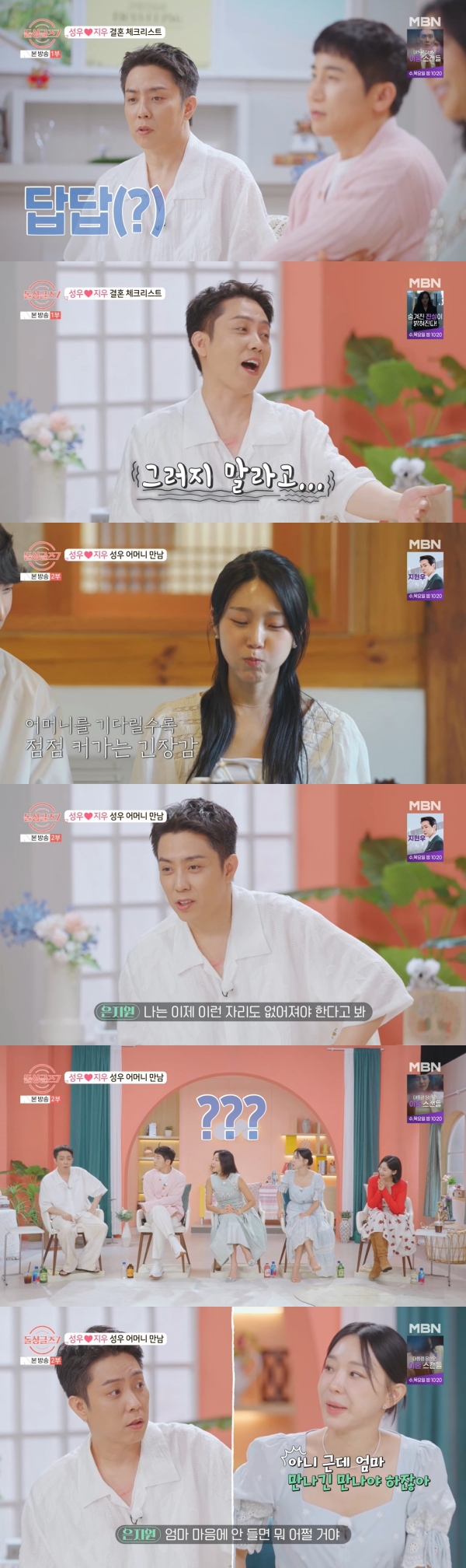 ¼º¿ì ¾î¸Ó´Ï¸¦ ¸¸³ª´Â ÀÚ¸®, ±äÀåµÇ´Â ºÐÀ§±â ¼Ó¿¡ MC ÀºÁö¿øÀº "³ª´Â ÀÌÁ¦ ÀÌ·± ÀÚ¸®µµ ¾ø¾îÁ®¾ß ÇÑ´Ù°í º»´Ù"°í ¸»Çß´Ù. ±×´Â "¾ö¸¶ ¸¶À½¿¡ ¾È µé¸é ¾î¿°Å¾ß. ÀÚ½Ä ÀÔÀå¿¡¼± ¹¹ ºÎ¸ð´Ô À§Çؼ °áÈ¥ÇϳÄ"¸ç °áÈ¥°üÀ» ²¨³Â´Ù.