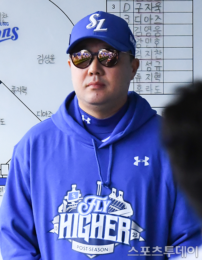 [´ë±¸=½ºÆ÷Ã÷Åõµ¥ÀÌ ÆØÇöÁØ ±âÀÚ] 6ÀÏ ´ë±¸ »ï¼º¶óÀÌ¿ÂÁîÆÄÅ©¿¡¼ ¿¸° 2025 KBO¸®±× Æ÷½ºÆ®½ÃÁð NC ´ÙÀ̳뽺¿Í »ï¼º ¶óÀÌ¿ÂÁîÀÇ ¿ÍÀϵåÄ«µå(WC) °áÁ¤Àü 1Â÷Àü, »ï¼º ¹ÚÁø¸¸ °¨µ¶ÀÌ Èĵ导¼ÅÃ÷¸¦ ÀÔ°í ÀÖ´Ù. 2025.10.06.