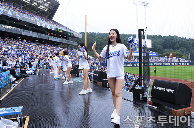 [´ë±¸=½ºÆ÷Ã÷Åõµ¥ÀÌ ÆØÇöÁØ ±âÀÚ] 6ÀÏ ´ë±¸ »ï¼º¶óÀÌ¿ÂÁîÆÄÅ©¿¡¼­ ¿­¸° 2025 KBO¸®±× Æ÷½ºÆ®½ÃÁð NC ´ÙÀ̳뽺¿Í »ï¼º ¶óÀÌ¿ÂÁîÀÇ ¿ÍÀϵåÄ«µå(WC) °áÁ¤Àü 1Â÷Àü, »ï¼º Ä¡¾î¸®´õ°¡ ÀÀ¿øÇϰí ÀÖ´Ù. 2025.10.06.