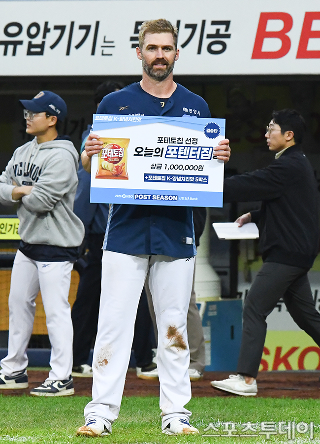 [´ë±¸=½ºÆ÷Ã÷Åõµ¥ÀÌ ÆØÇöÁØ ±âÀÚ] 6ÀÏ ´ë±¸ »ï¼º¶óÀÌ¿ÂÁîÆÄÅ©¿¡¼ ¿¸° 2025 KBO¸®±× Æ÷½ºÆ®½ÃÁð NC ´ÙÀ̳뽺¿Í »ï¼º ¶óÀÌ¿ÂÁîÀÇ ¿ÍÀϵåÄ«µå(WC) °áÁ¤Àü 1Â÷Àü, NC°¡ 4-1·Î ½Â¸®Çß´Ù. Æ÷ÅÙÅÍÁü»ó¿¡ »ÌÈù NC µ¥À̺ñ½¼ÀÌ Æ÷Á ÃëÇϰí ÀÖ´Ù. 2025.10.06.